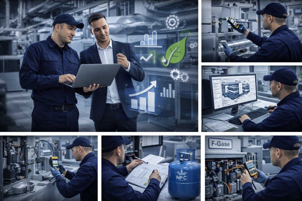✅ Gesetzeskonforme Prüfungen (z. B. F-Gase-Verordnung) 📋
